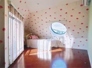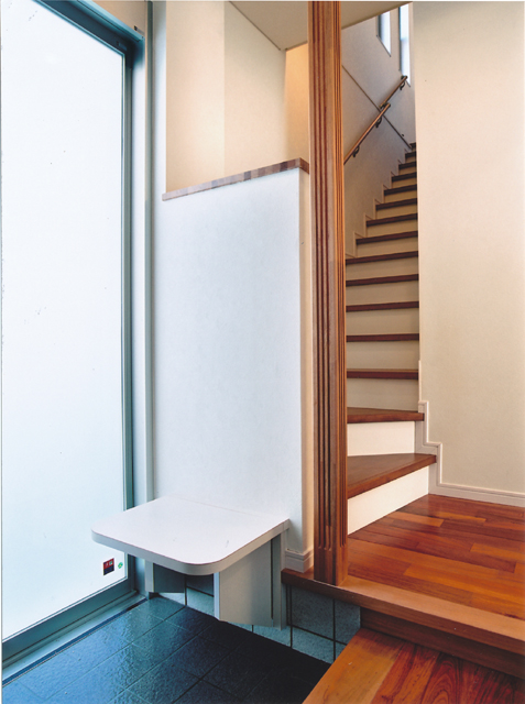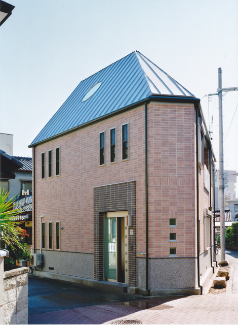 角地で三角の形をした狭小地を活かし、 無駄なスペースを排除した見所たっぷりの住まいです。
